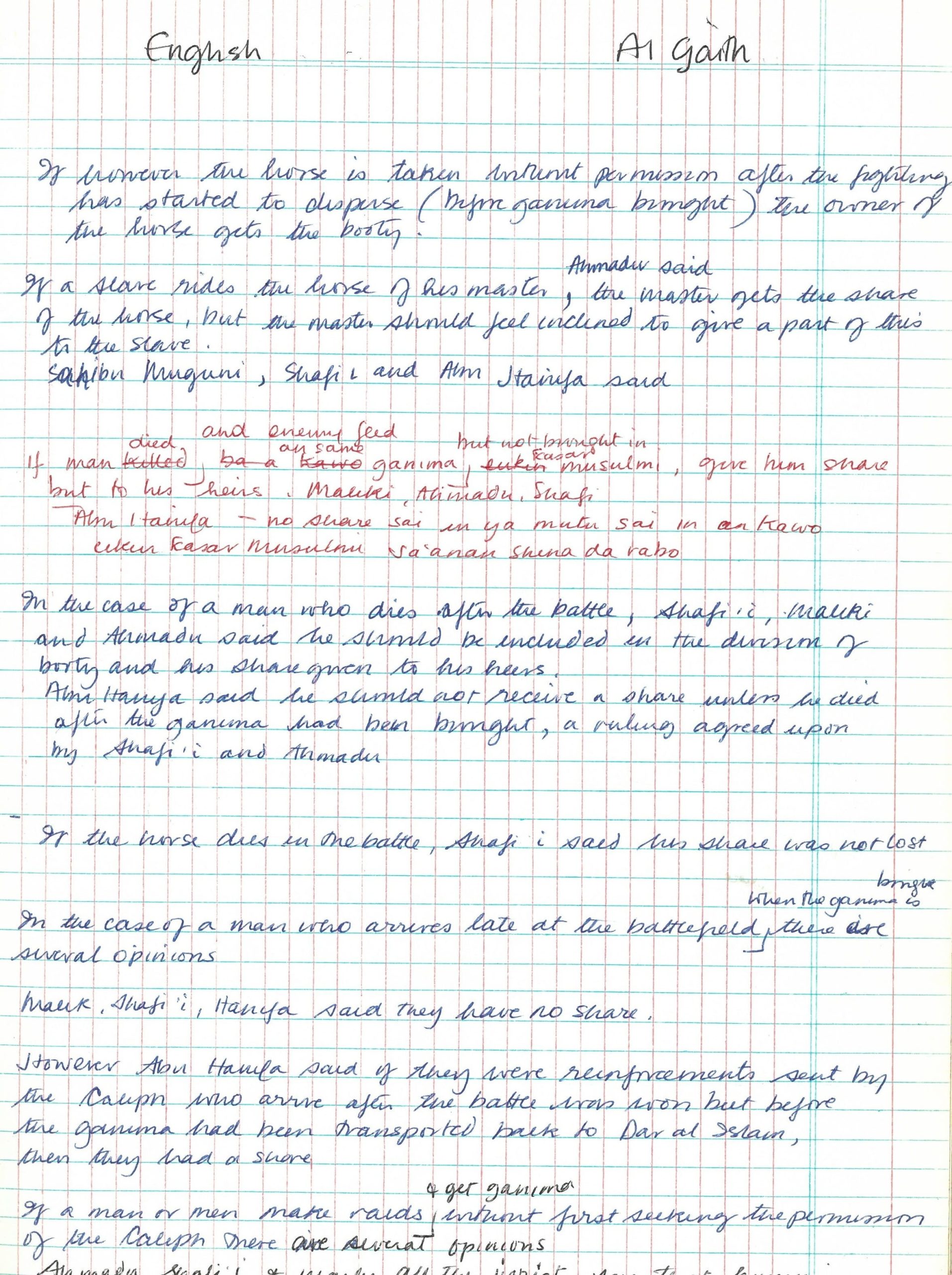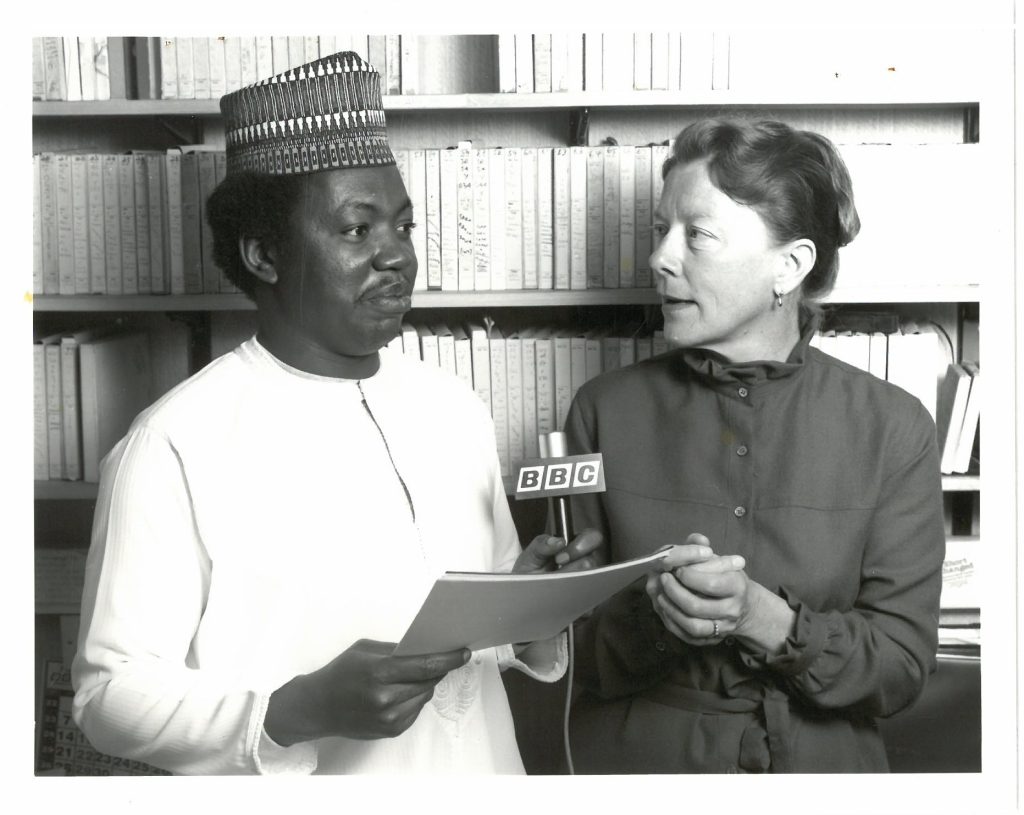 Boyd’s primary research interest was a relatively understudied nineteenth century female poet, Nana Asma’u Fodio (1793-1865), whose work survives in Arabic, Hausa and Fulfulde. She had begun working on the Nana Asma’u documents in her own time in 1975. Her independent research had begun even earlier when she worked for a period for the Sultan of Sokoto, arranging his private apartments in preparation for the visit of the President of the Niger Republic to Sokoto in 1960. Through this work, she gained an insight into the workings of the palace and the court, developed fluency in Hausa, and began a longstanding connection with the Sultan, which proved invaluable for later research into the life of Nana Asma’u. Papers relating to Boyd’s research on Nana Asma’u, including copies of manuscript poems, and related translations are among the papers on deposit at the School of Oriental and African Studies (SOAS).
