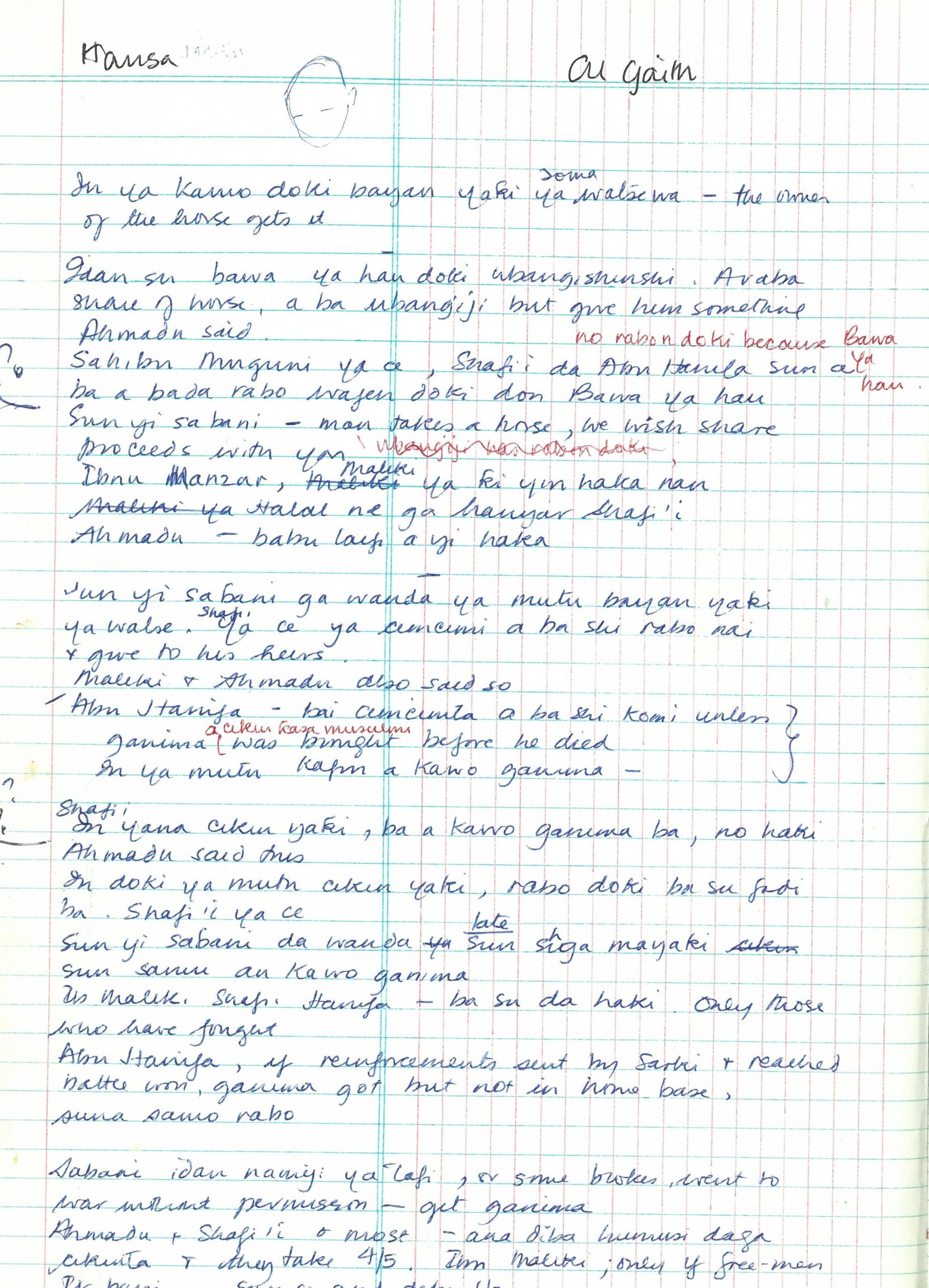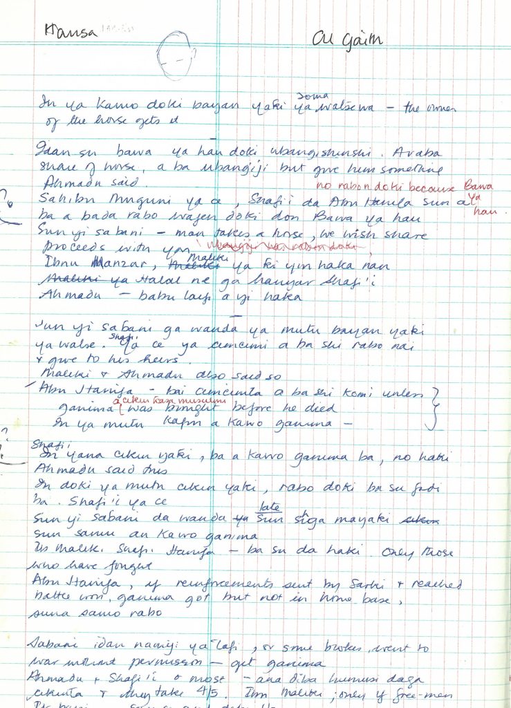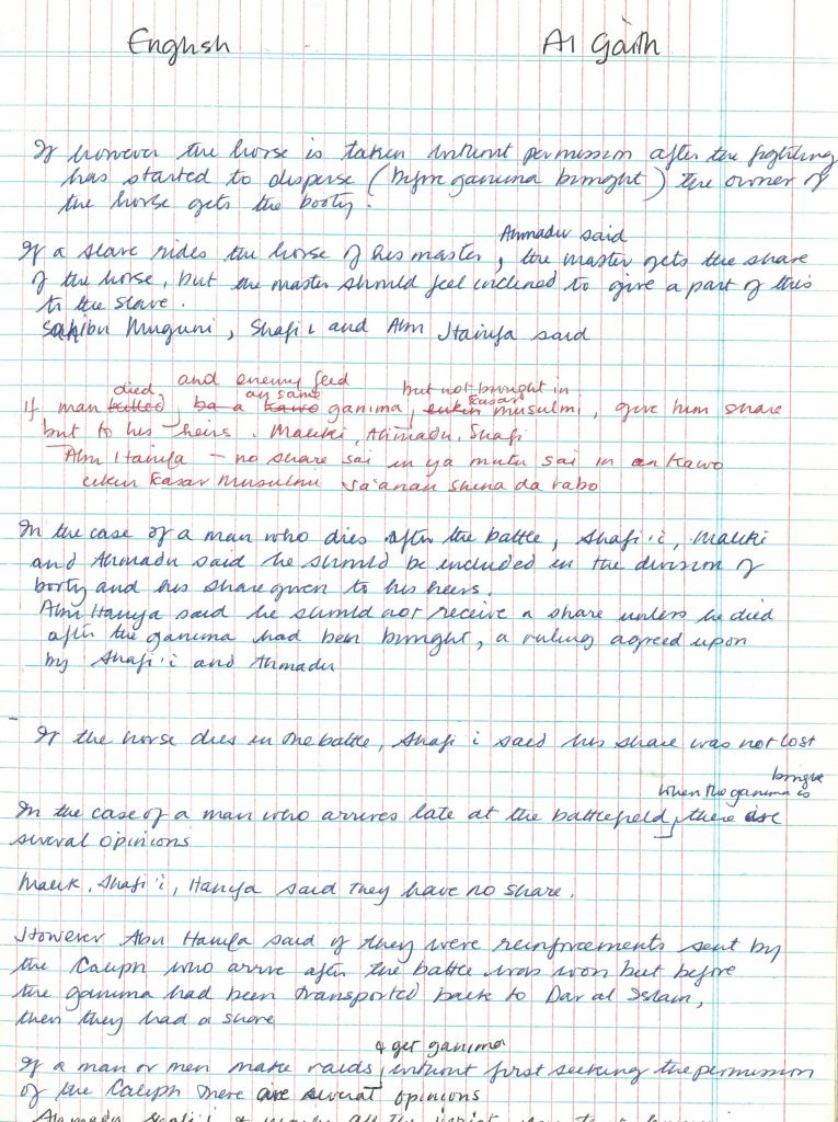 Alongside Sidi Sayudi, the son of a well-known scholar, the Ubandoma of Sokoto, Jean worked on producing a Hausa translation of Muhammad Bello’s famous work on the history of the Jihad (Infaq al-Maisur). In doing this work, the pair undertook to visit the sites of the battlefields, often very remote locations reached only on horseback. Many of the sites had strong associations with Nana Asma’u or featured in her poetry. One highlight of the collection is an annotated trek map detailing the route taken in 1976 on horseback. Boyd’s MPhil thesis was submitted in 1982 under the supervision of Dr Murray Last and the degree was awarded by the Council for National Academic Awards (CNAA) in London.