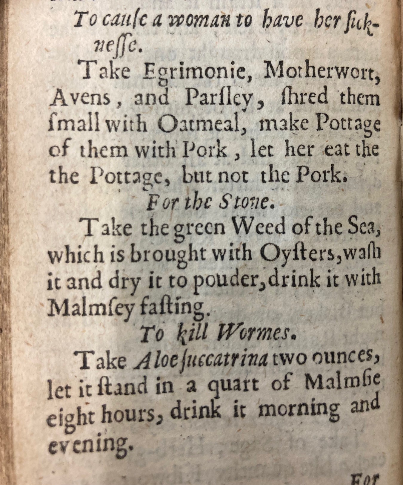 Throughout the session we were all able to see an incredible array of objects concerning menstrual health, and both Liam and James were amazing in showing us a fascinating lineage of this history. Whether this was from the present day with books on embracing spirituality and the menopause; or the twentieth century, from which came the ideas that “Menstrual disturbances should always be considered a pathological condition to be treated, and cured where possible, and never as an inevitable condition of feminine life” and “as a rule, in healthy girls under favourable circumstances neither the pain nor the discharge itself is sufficient to justify withdrawal from the usual duties and pleasures of life.” Then to the adverts for the ‘Harness’s electropathic belt’, curing anything including ‘ladies ailments’ and ‘hysteria’ in a nineteenth-century issue of The Illustrated London News. Eighteenth-century home recipes of comfrey leaves, wild bramble bush, plantain, yarrow and red archangel flowers sought ‘to cure the over-flowing of the courses, without… any farther trouble.’ And recipes in the seventeenth century called for ‘a woman that hath too much of her flowers’ (perhaps a heavy period) to burn a hare’s foot and mix the remains with red wine. In the fourteenth century it was advised to “Take the leaves of violas, roses and mallow, and in equal parts … cooked in water and from that water one should make a subfumigation for her [i.e. apply the water to her genitals as a vapour by boiling it underneath her]. Then one should take the horn of a deer, and with that having been burned, one should reduce it to powder and one should drink it dissolved in rain-water.”